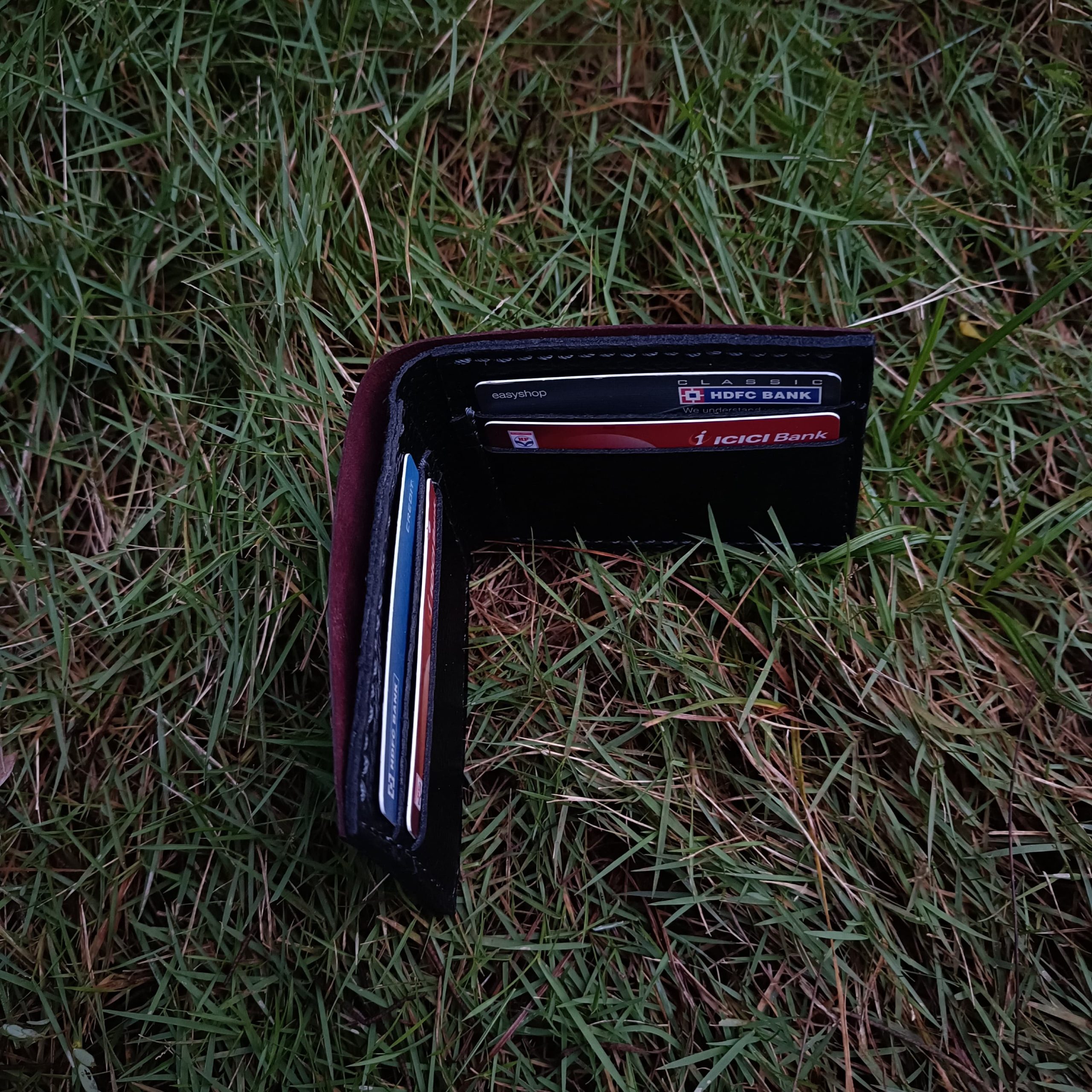 Be the first to review “The Classic Bi-Fold Wallet / Burgandy + Black”
